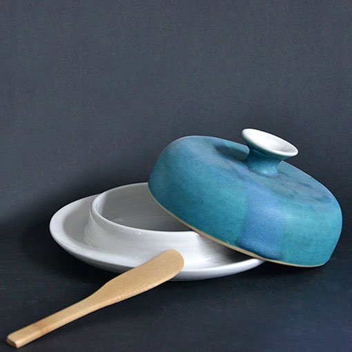 weißer Ton, türkis-weiß, H 7,5 cm, Ø 12,5 cm, hoher Innenring