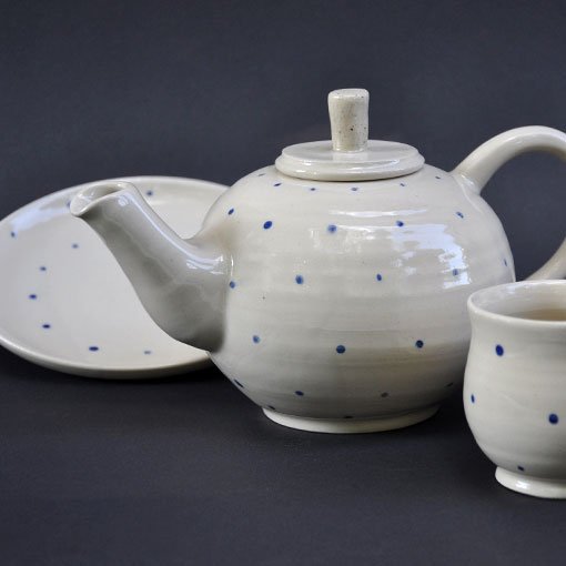 weißer Ton, gepünktelt, Teekanne: H 14 cm, Ø 15 cm, 3/4 Liter