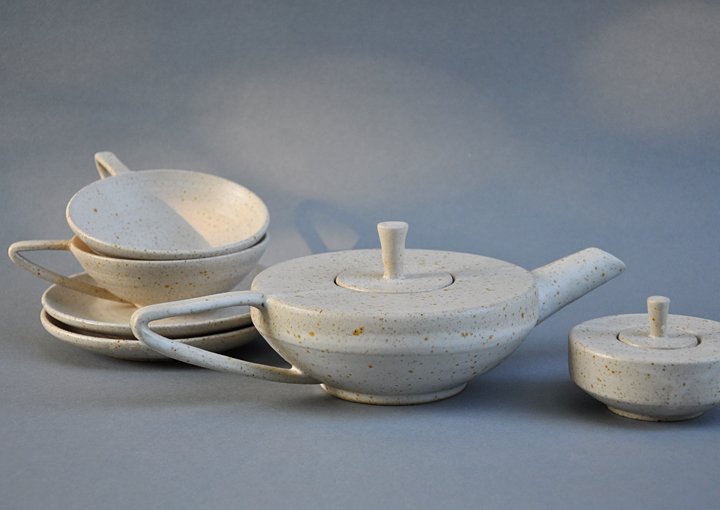 Steinzeugton mit Pyrit, Teekanne: H 9 cm, Ø 15 cm, 1/3 Liter